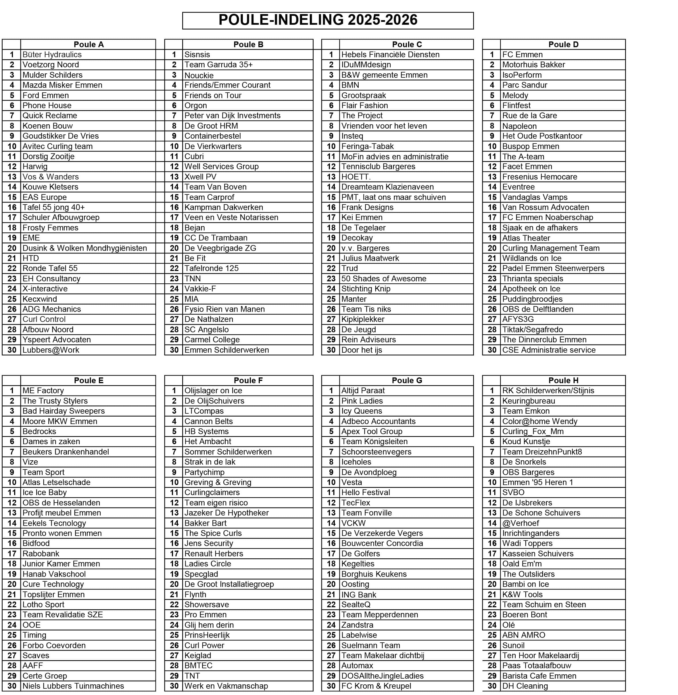 Curling Op deze pagina vind je een actueel overzicht. TUSSENSTAND NA VOORRONDE 1 welkom bij emmen on ice 2025/2026